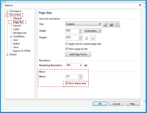 2.3 .In the Bleed panel, place the 2mm measurement in the editable field and add Show bleed area .