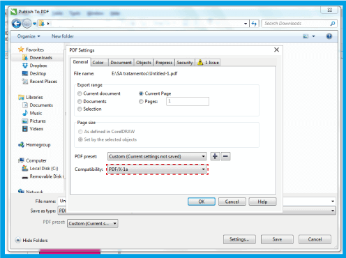 3.3 .In the General tab select the PDF/x-1a.
