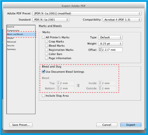 .Abaixo, clique on , save these PDF presets with whatever name you want, so you can always reuse it. Finalize by clicking .