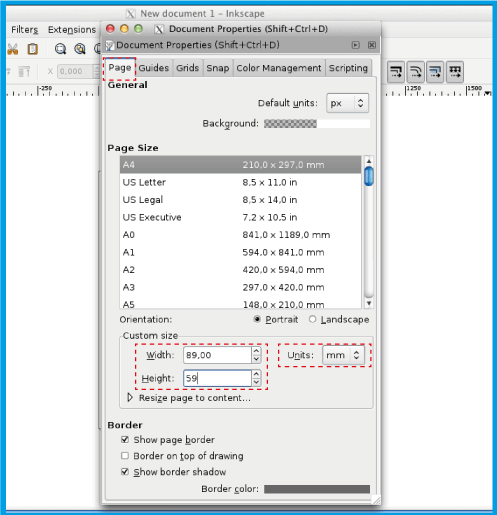 .Make sure you add 4mm (0.4cm) to the height and width of your document.In the case of the 8.5x5.5cm business card insert 8.9x5.9cm.