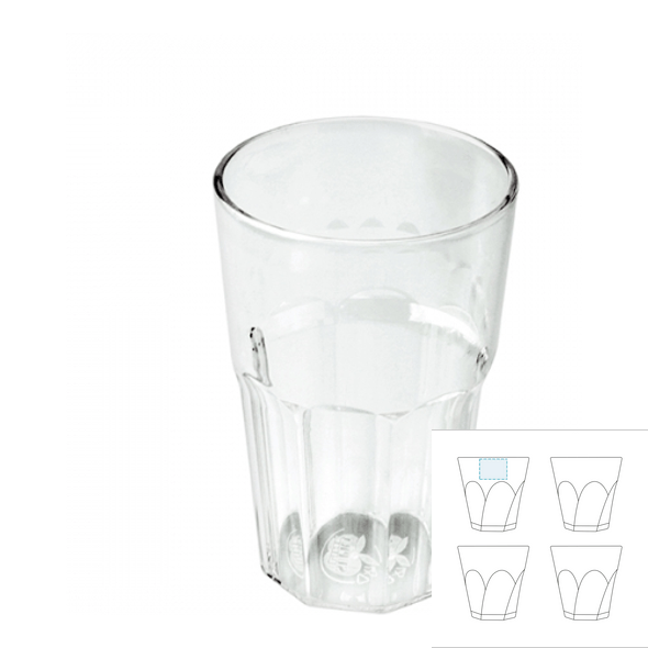 Nerozbitná fasetovaná plastová sklenice s potiskem